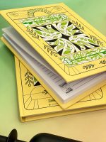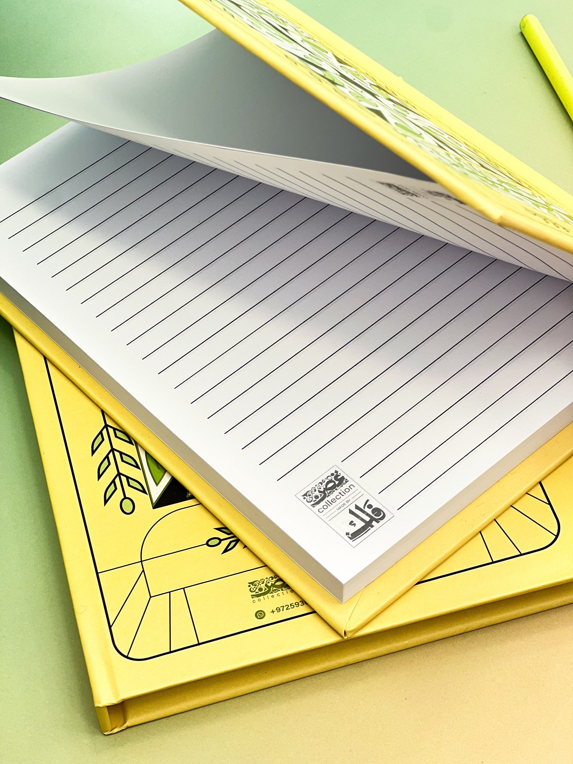 دفتر يعكس بساطة وأناقة التراث، بلون أصفر يزينه أغصان الزيتون وسنابل القمح، ليصبح اختيارك المثالي لكل ما تريد كتابته.