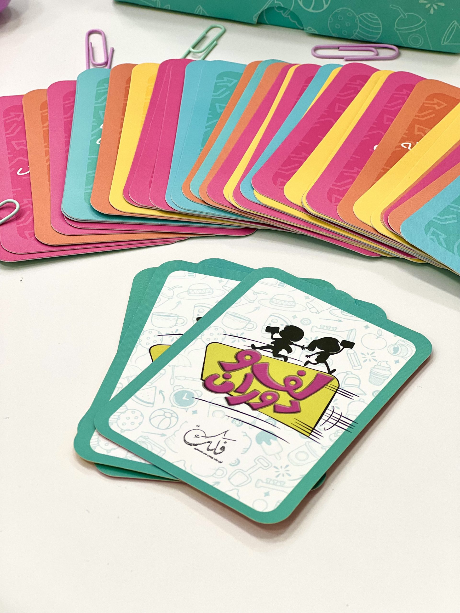 مع 100 بطاقة متنوعة في 4 ألوان، كل بطاقة تحمل هدفًا يمكن تحقيقه بطرق لا حصر لها، مما يجعل اللعبة قابلة للتكيّف مع أي مكان وأي مجموعة.